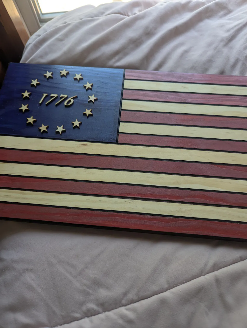 These template jigs are designed in several sizes for Wooden American Flags that I sell plans for and are essential for proper star layout. This jig helps layout the stars 10 times faster, and in perfect alignment. This Template is intended for use in aligning and laying out laser cut stars and Logo pieces onto the project as seen in the pictures.